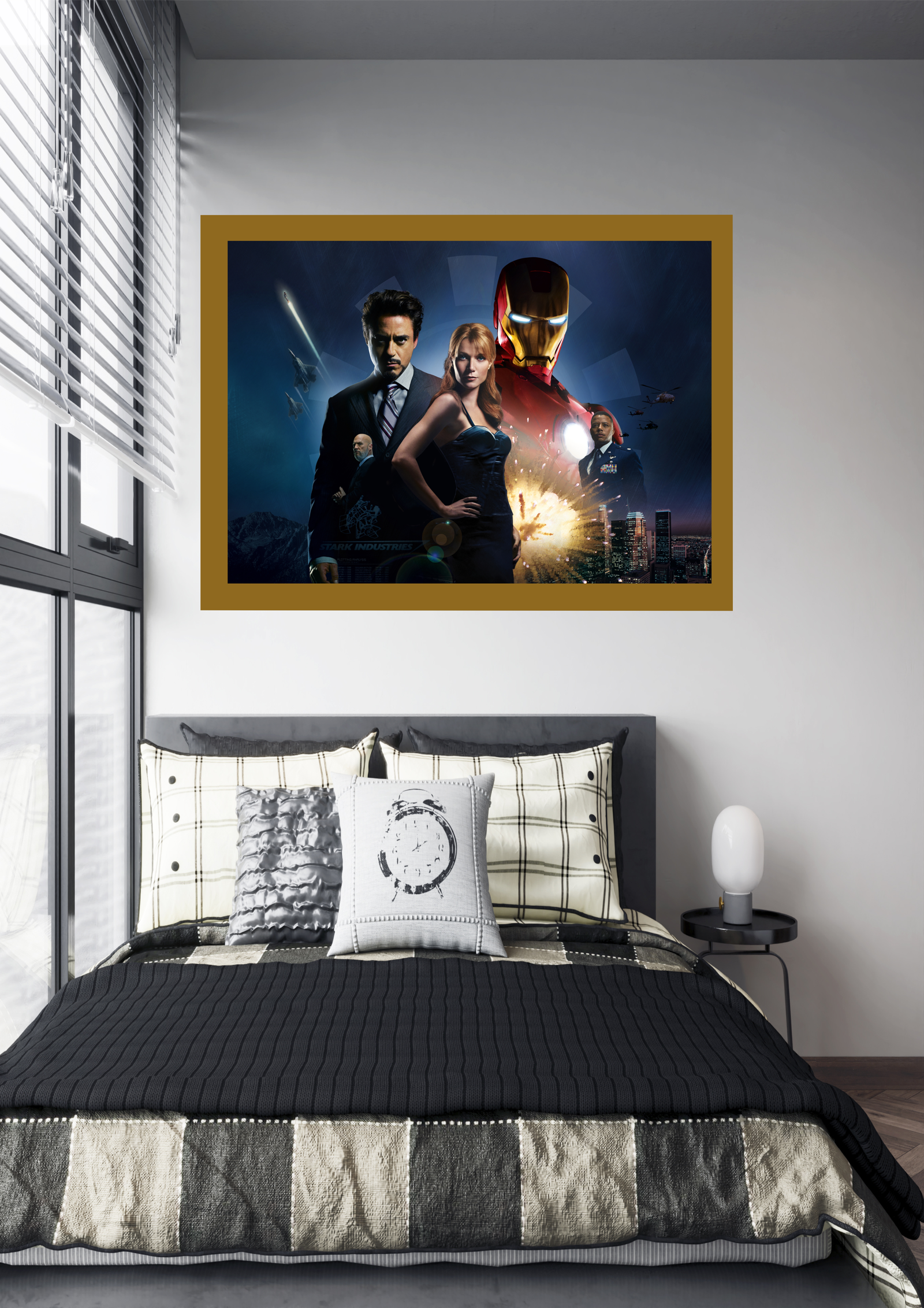 Neste quarto moderno, a decoração é elevada a um novo patamar com a presença imponente de um pôster de herói tecnológico. A imagem vibrante na parede destaca um trio icônico, simbolizando poder e inovação. O contraste entre o design minimalista do ambiente e a complexidade do pôster cria uma harmonia visual intrigante. A cama, com sua colcha em tons neutros e almofadas texturizadas, oferece conforto e sofisticação. A luz suave que entra pela janela realça os detalhes do espaço, enquanto a luminária moderna ao lado adiciona um toque de contemporaneidade. Este ambiente é um refúgio para admiradores de tecnologia e estilo, onde cada elemento foi cuidadosamente escolhido para inspirar e impressionar.