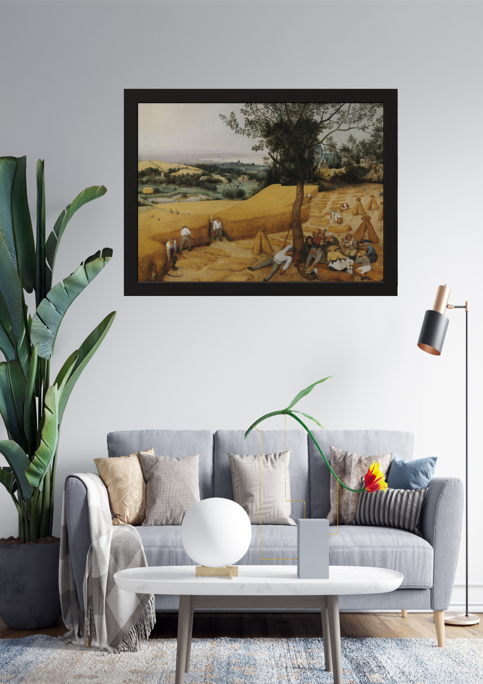 Esta obra clássica retrata uma cena pastoral, capturando a essência do trabalho no campo com detalhes ricos e uma paleta de cores terrosas. A moldura flutuante preta destaca a imagem, proporcionando um contraste elegante que complementa qualquer ambiente moderno. Ideal para salas de estar, a peça traz um toque de sofisticação e tranquilidade ao espaço.