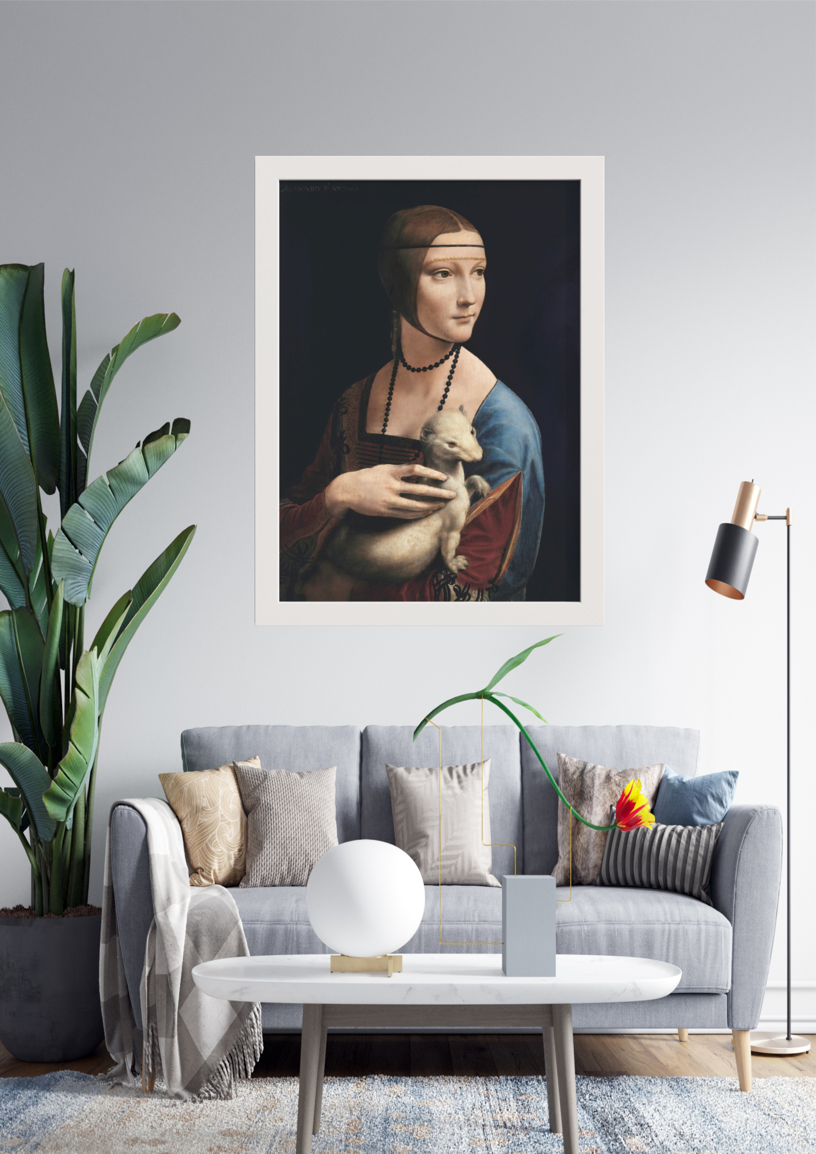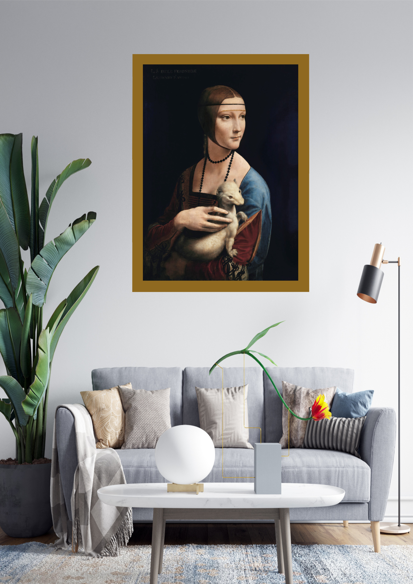 Melhore a sua casa com a elegância da “Dama com Arminho” de Leonardo da Vinci. Esta obra-prima, celebrada pela sua representação delicada e expressão serena, traz um toque de charme renascentista a qualquer ambiente. Ideal para entusiastas da arte e para quem aprecia a beleza histórica em sua decoração.