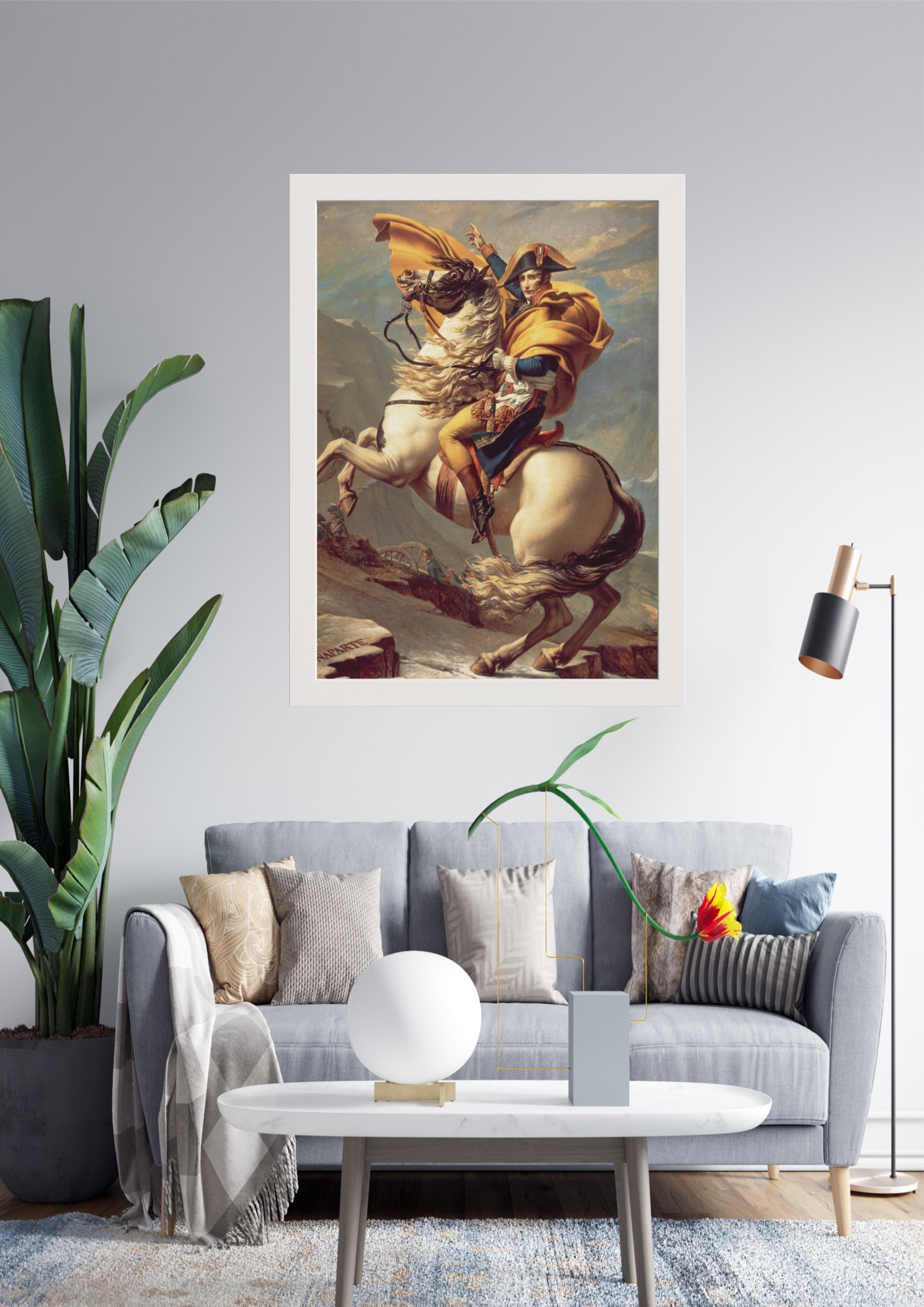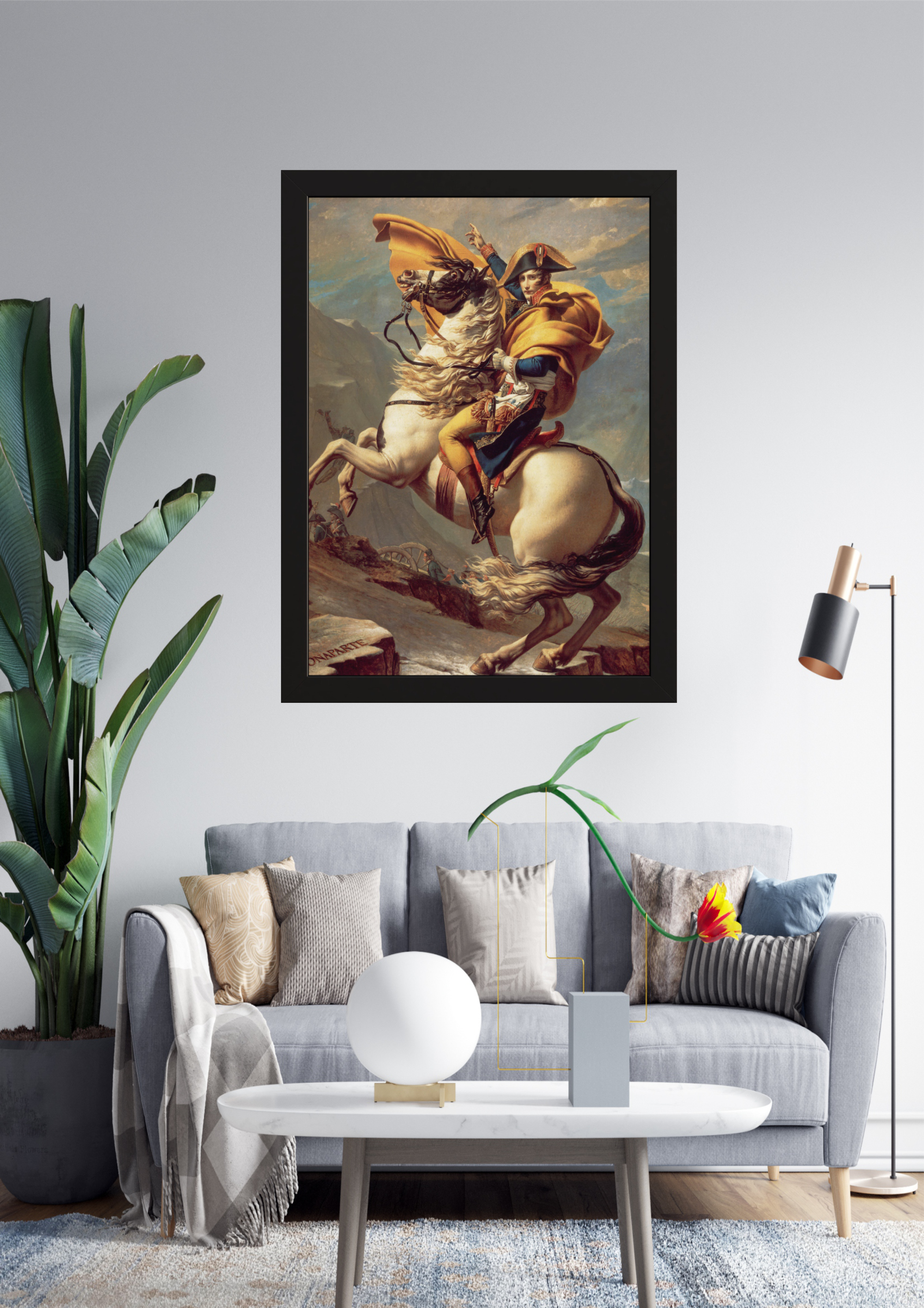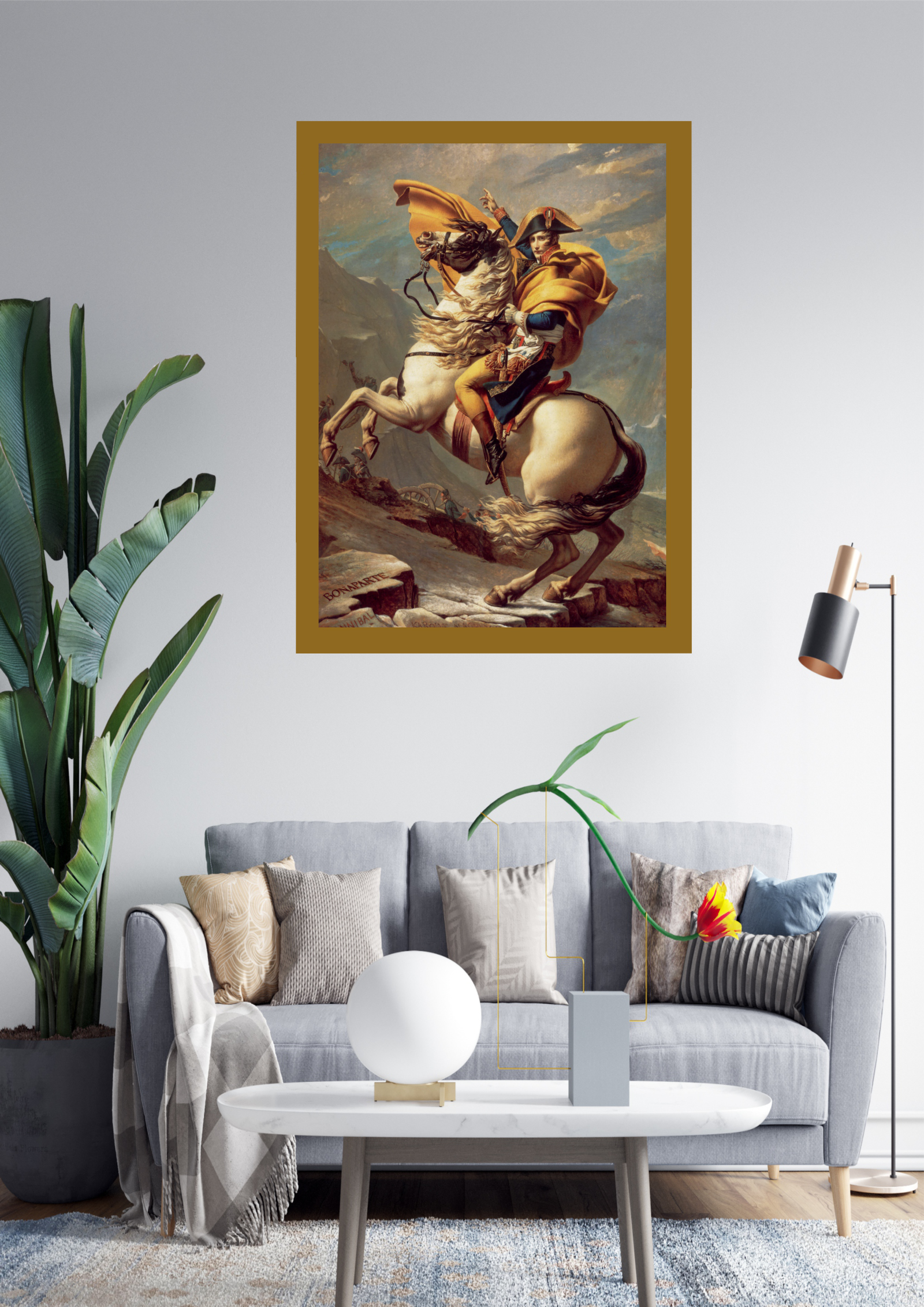 Capture a essência da liderança e bravura com este impressionante quadro de Napoleão Bonaparte cruzando os Alpes. A obra retrata a determinação e a força de um dos líderes mais emblemáticos da história, montado em um majestoso cavalo branco, desafiando as adversidades da natureza. Ideal para ambientes que buscam inspiração e grandeza.