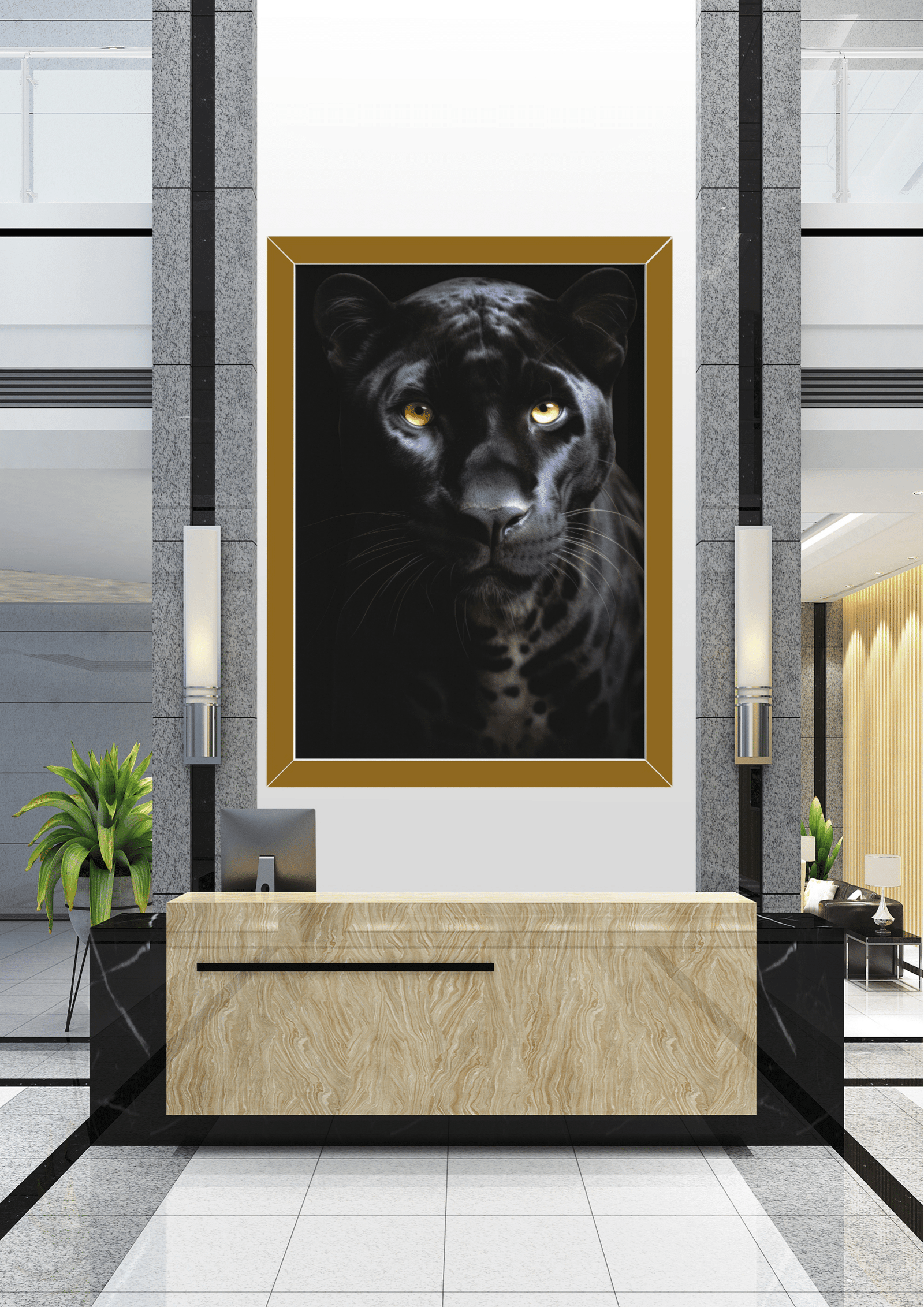 Presença Imponente: A pantera, símbolo de poder e mistério, transforma qualquer ambiente, trazendo personalidade e charme.