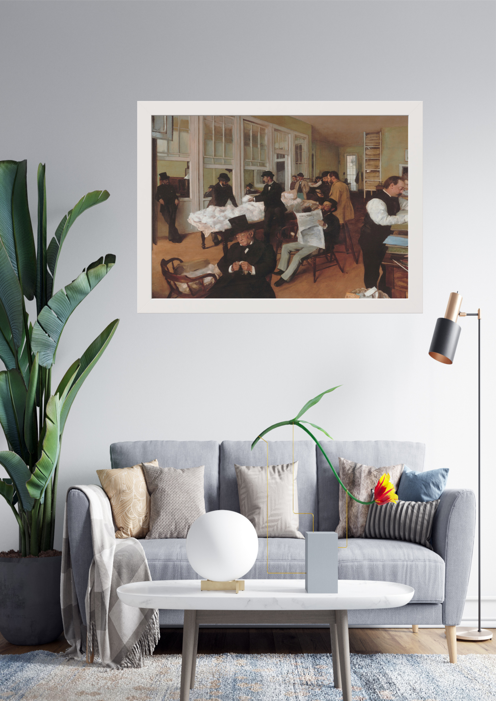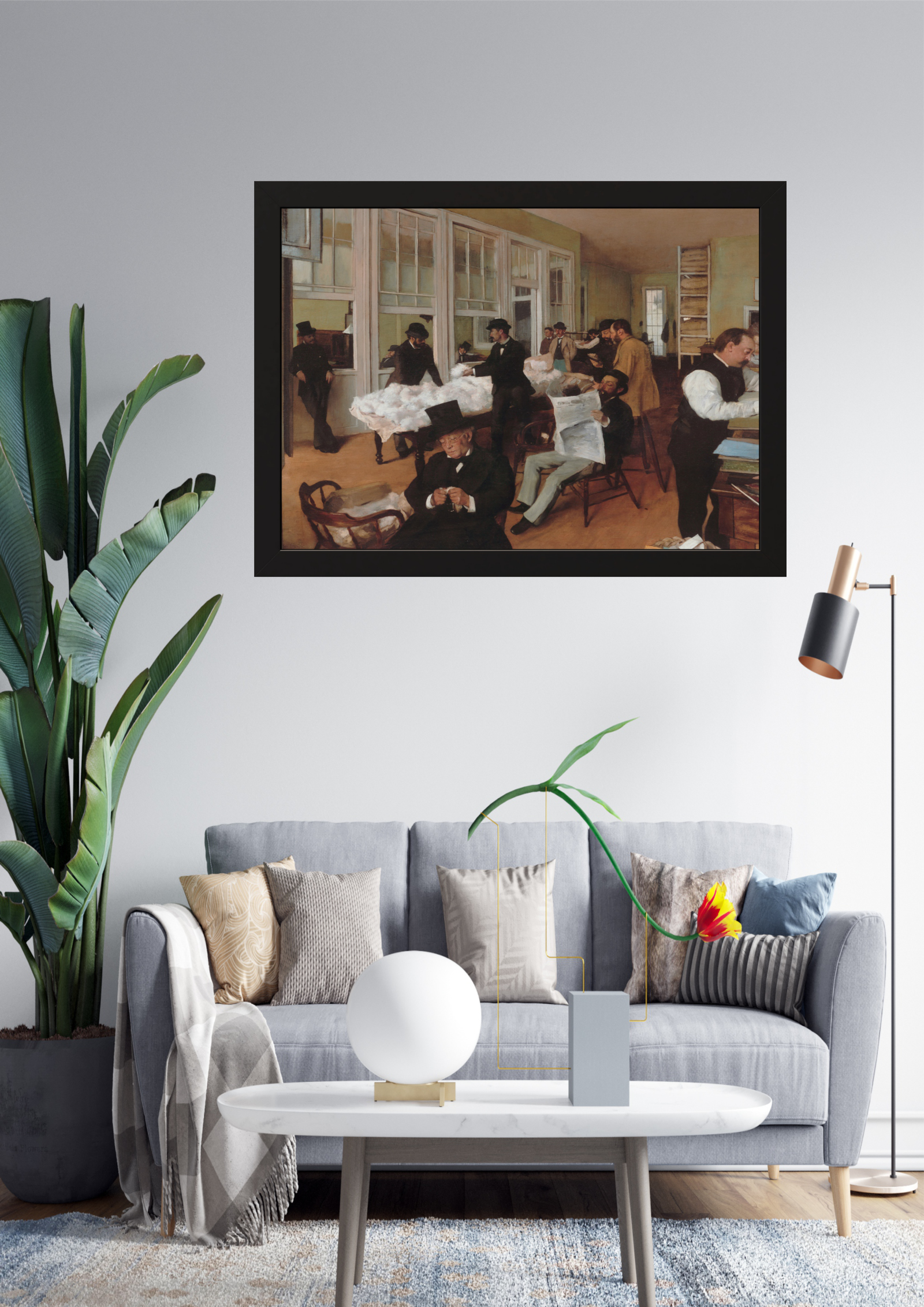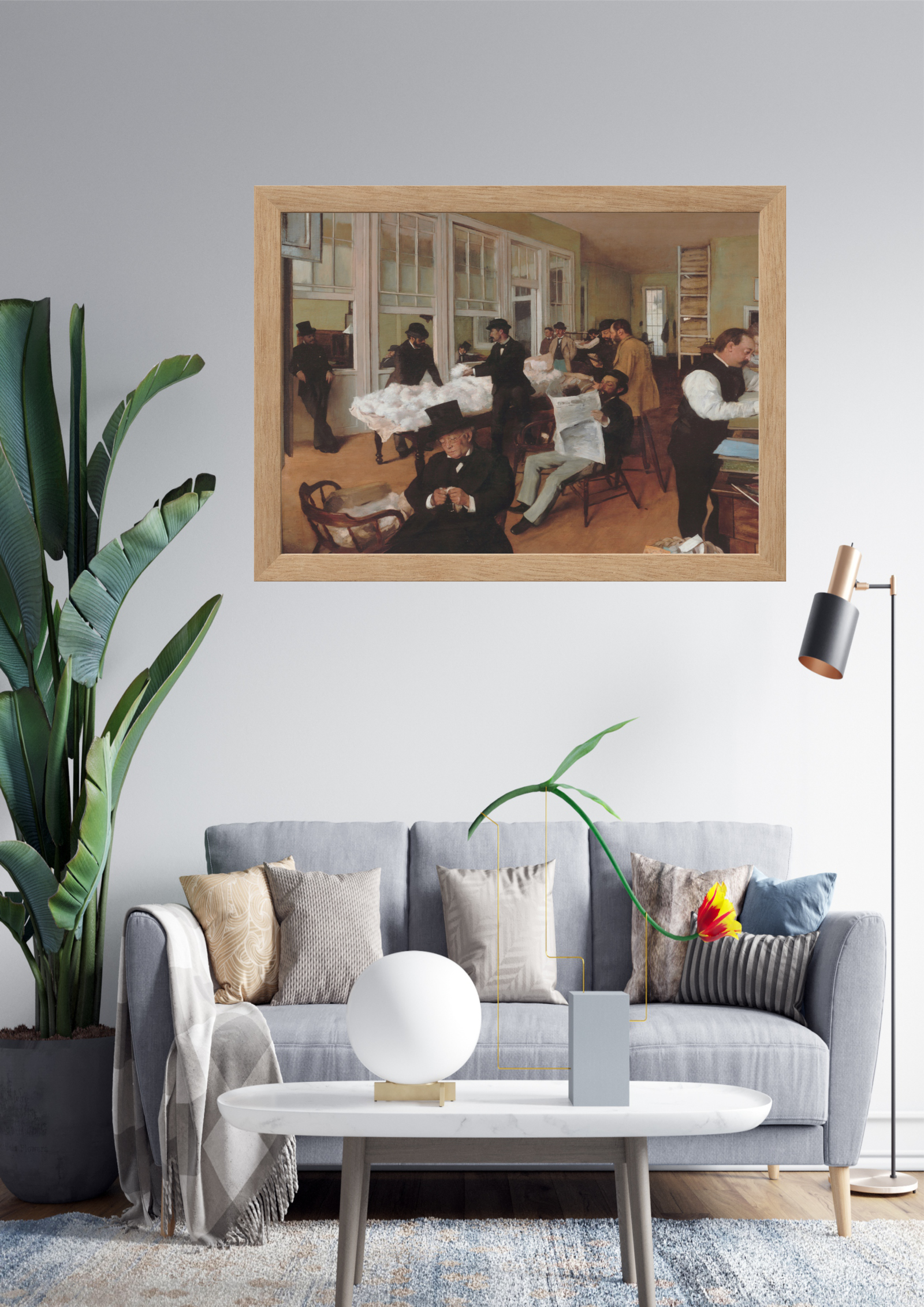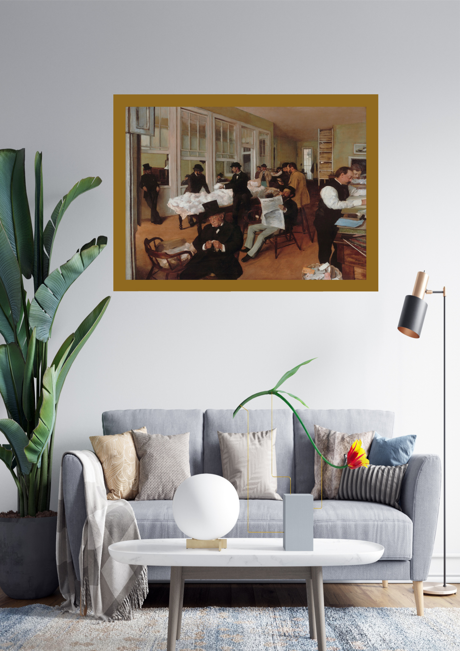 Integração Moderna: A obra clássica é harmoniosamente integrada em um espaço moderno, destacando sua atemporalidade.